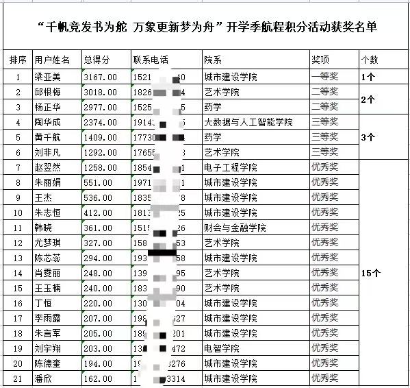 经过激烈的角逐,本次活动已圆满落下帷幕。现将根据最终积分排行榜确定的获奖名单公布如下,让我们一同见证这些“航程先锋”的诞生!